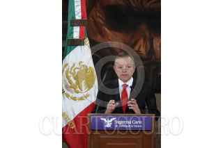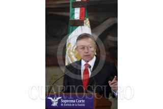 CIUDAD DE MÉXICO, 18MAYO2022.- Arturo Zaldívar, ministro Presidente de la Suprema Corte de Justicia de la Nación (SCJN), ofreció una conferencia de prensa en la que informó sobre su visita al penal de Santa Martha Acatitla la semana pasada y la serie que se estrenará sobre el Multifeminicida, Caníbal de Atizapán. El acto se realizó en la Suprema Corte de Justicia de la Nación. FOTO: GRACIELA LÓPEZ /CUARTOSCURO.COM