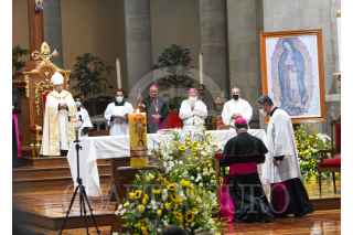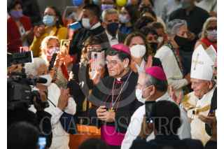 TOLUCA, ESTADO DE MÉXICO, 18MAYO2022.- Monseñor Raúl Gómez González nuevo Arzobispo Electo de Toluca durante su ceremonia de Profesión de Fe y Juramento de Fidelidad en la Catedral de Toluca. FOTO: CRISANTA ESPINOSA AGUILAR /CUARTOSCURO.COM
