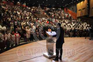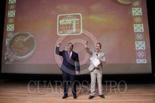 CIUDAD DE MÉXICO, 19DEMAYO.- El programa de televisión "La Ruta del Sabor" cumplió 20 años y para celebrar estrenará una nueva temporada. El conductor Miguel Conde dio este anuncio en el Auditorio Alejo Peralta del IPN en compañía de Arturo Reyes Sandoval, director del IPN y Carlos Brito, director de Canal Once. FOTOS: DENISSE HERNÁNDEZ/CUARTOSCURO