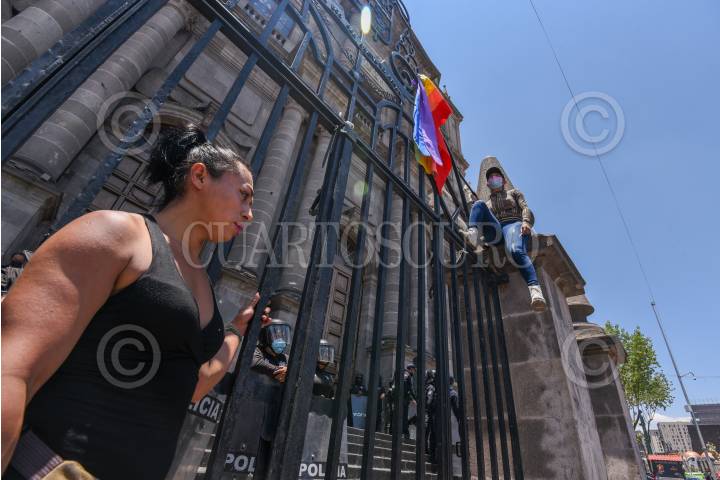 TOLUCA, ESTADO DE MÉXICO, 19MAYO2022.- Integrantes de la comunidad LGBTTTIQ+ fueron reprimidos por policías estatales cuando intentaron manifestarse en la Catedral de Toluca en donde se realizaba ceremonia de Toma de Posesión e inicio del Ministerio Pastoral del S.E. Monseñor Raúl Gómez González II Arzobispo de Toluca, en la gresca también resultaron golpeados 5 reporteros. La Catedral de Toluca es resguardada por elementos de la Policía Estatal. Todo después de haber sido cancelada la discusión del matrimonio igualitario por los diputados mexiquenses.FOTO: CRISANTA ESPINOSA AGUILAR /CUARTOSCURO.COM