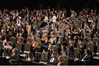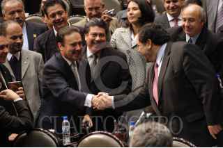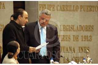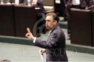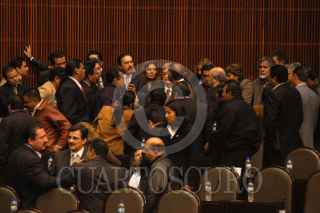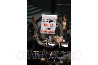 MÉXICO D.F. 23DICIEMBRE2006.- Diputados del PRD muestran una manta con la leyenda “El agua no es Mercancía” durante la sesión en la Cámara de diputados donde se aprobó el presupuesto para el 2007. FOTO: GUILLERMO PEREA/ CUARTOSCURO.COM
