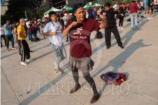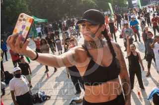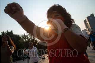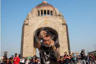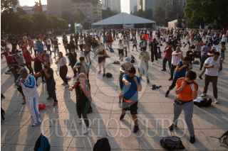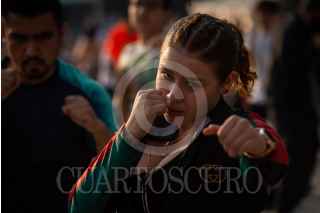 CIUDAD DE MÉXICO, 21MAYO2022.- Decenas de personas se dieron cita en la explanada del monumento a la Revolución para el "Entrenamiento de Campeones del Consejo Mundial de Boxeo" que esta ocasión estuvo dirigido por Mariana "La Barbie" Juárez rumbo a la Clase Masiva de Box que se realizará el próximo 18 de junio en el zócalo capitalino. FOTO: MARIO JASSO/CUARTOSCURO.COM