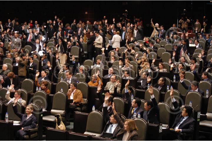 MÉXICO D.F. 23DICIEMBRE2006.- Diputados del PRD muestran una manta con la leyenda “El agua no es Mercancía” durante la sesión en la Cámara de diputados donde se aprobó el presupuesto para el 2007. FOTO: GUILLERMO PEREA/ CUARTOSCURO.COM