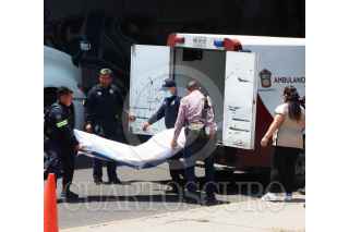 TLANEPANTLA, ESTADO DE MÉXICO, 21MAYO2022.- Asesinaron a un presunto asaltante de camión de pasajeros el cual quedó tirado en la banqueta de la lateral de la autopista México Querétaro en Valle Dorado. FOTO: ROGELIO MORALES/CUARTOSCURO.COM