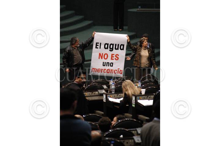MÉXICO D.F. 23DICIEMBRE2006.- Diputados del PRD muestran una manta con la leyenda “El agua no es Mercancía” durante la sesión en la Cámara de diputados donde se aprobó el presupuesto para el 2007. FOTO: GUILLERMO PEREA/ CUARTOSCURO.COM