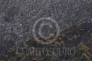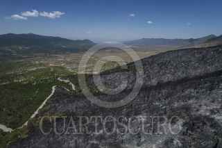 MAZAPIL, ZACATECAS, 22MAYO2022.- Durante la semana del 05 al 11 de mayo un incendio forestal consumió 550 hectáreas en el Cerro del Temeroso, en la sierra de El Puerto del Dique, entre los municipios de Mazapil y Concepción del Oro; pastizales, palma, biznaga y pino endémico quedaron destruidos; hogar de animales como el coyote, ardilla, musaraña, venado, tuza, zorra, tlalcoyote, musaraña, víbora de cascabel chilladora y lagartija de collar. Flora y fauna que será difícil recuperar pronto. Según cifras de la Comisión Nacional Forestal, se registran anualmente un promedio de 8 mil incendios forestales que afectan los diferentes ecosistemas terrestres en diversos grados. El año de 1998 es considerado el de mayor desastre a nivel nacional, con 14 mil 428 incendios y 848 mil 960 hectáreas afectadas. En lo que va del año, se han registrado 4,366 incendios forestales en 32 entidades federativas, en una superficie de 232,452.63 hectáreas, De esta superficie, el 92.86% correspondió a vegetación en los estratos herbáceo y arbustivo y el 7.14% a arbóreo. Los estados con mayor presencia de incendios forestales son: Estado de México, Ciudad de México, Michoacán, Puebla, Chihuahua, Chiapas, Jalisco, Durango, Veracruz y Morelos, que representan el 80.67% del total nacional. Los incendios rompen con el equilibrio climático y contribuyen al calentamiento global ya que liberan dióxido de carbono (CO2), un gas que, en concentraciones grandes, impide que el calor salga de la tierra. De hecho, los incendios forestales en el mundo son responsables del 10% de todo el CO2 en la atmósfera. FOTO: ADOLFO VLADIMIR /CUARTOSCURO.COM