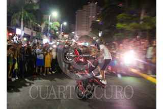 ACAPULCO, GUERRERO, 22MAYO2022.- Motociclistas de diferentes partes del país se concentraron en la zona de La Condesa de Acapulco, para realizar el Acamoto, que estuvo suspendido por dos años por la pandemia de Covid-19. En el lugar miles de personas se concentraron para observen acrobacias y arrancones que realizaron los bikers. FOTO: CARLOS ALBERTO CARBAJAL/CUARTOSCURO.COM