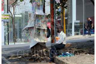 CUERNAVACA, MORELOS, 22MAYO2022.- Un hombre que vende golosinas y juegos de lotería gigantes en un crucero de la capital se toma un descanso. FOTO: MARGARITO PÉREZ RETANA / CUARTOSCURO.COM
