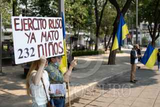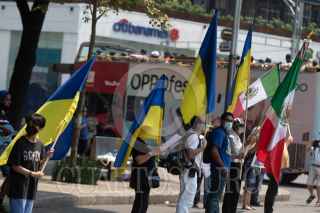 CIUDAD DE MÉXICO, 22MAYO2022.- Ucranianos avecindados en nuestro país y simpatizantes nacionales se manifestaron en contra de la guerra que Rusia ha desatado en contra de Ucrania desde hace ya más de 80 días. Los manifestante se concentraron a un costado del Ángel de la Independencia. FOTO: MOISÉS PABLO/CUARTOSCURO.COM
