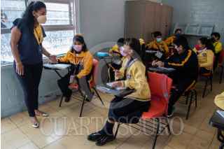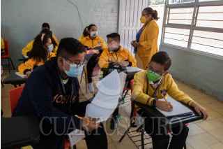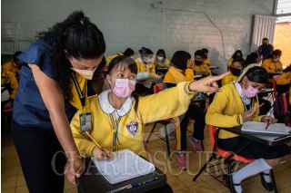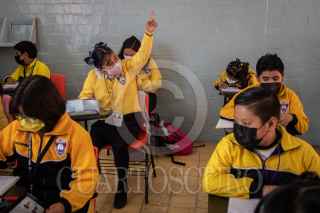 CIUDAD DE MÉXICO, 23MAYO2022.- En conmemoración al movimiento estudiantil de 1929, que llevó a la entonces Universidad Nacional a adquirir la autonomía cada 23 de mayo se celebra el día del estudiante. Hoy en día los tiempos han cambiado debido a la pandemia, estudiantes migraron a las clases en linea pero desde mediados del año pasado han ido poco a poco regresando a las clases presenciales. En la imagen alumnos de la primara Juan Crisostomo tomando clases. FOTO: ANDREA MURCIA /CUARTOSCURO.COM