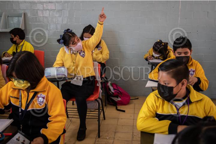 CIUDAD DE MÉXICO, 23MAYO2022.- En conmemoración al movimiento estudiantil de 1929, que llevó a la entonces Universidad Nacional a adquirir la autonomía cada 23 de mayo se celebra el día del estudiante. Hoy en día los tiempos han cambiado debido a la pandemia, estudiantes migraron a las clases en linea pero desde mediados del año pasado han ido poco a poco regresando a las clases presenciales. En la imagen alumnos de la primara Juan Crisostomo tomando clases. FOTO: ANDREA MURCIA /CUARTOSCURO.COM