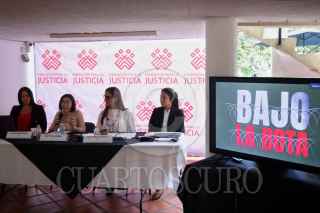 CIUDAD DE MÉXICO, 24MAYO2022.- Alicia Moncada, Edith Olivares y Ana Lorena Delgadillo durante el informe del micrositio “Bajo la Bota. Este informe tiene el fin de evidenciar los devastadores efectos de la militarización de la política migratoria a traves de una documentación de trabajo de campo en frontera norte y Sur con 100 testimonios y 144 a solicitudes de información pública. FOTO: ANDREA MURCIA /CUARTOSCURO.COM