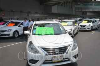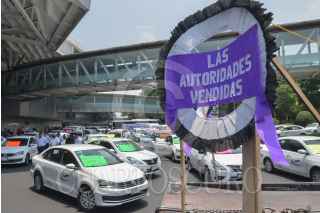 CIUDAD DE MÉXICO, 24MAYO2022.- Taxistas de las empresas "Yellow Cab", "Nueva Imagen", "Porto Taxi", "Sitio 300" y demás empresas que ofrecen sus servicios en el Aeropuerto Internacional de la Ciudad de México (AICM), bloquearon el acceso principal de la Terminal 1 para exigir a las autoridades se prohíba la entrada de vehículos que brindan servicio de viajes por aplicación móvil. FOTO: MARIO JASSO/CUARTOSCURO.COM