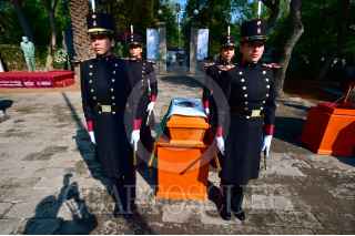 CIUDAD DE MÉXICO, 24MAYO2022.- Andrés Manuel López Obrador, Presidente de México, encabezó la ceremonia de inhumación y homenaje póstumo a Arnoldo Martínez Verdugo en la Rotonda de las Personas Ilustres. Acompañaron al mandatario: Martha Recaséns Díaz de León, viuda de Arnoldo Martínez Verdugo; Olga Sánchez Cordero Dávila, Presidenta de la Mesa Directiva de la Cámara de Senadores; Sergio Carlos Gutiérrez Luna, Presidente de la Mesa Directiva de la Cámara de Diputados; Claudia Sheinbaum Pardo, Jefa de Gobierno de la Ciudad de México; Rubén Rocha Moya, Gobernador Constitucional del Estado de Sinaloa; Luis Crescencio Sandoval González, Secretario de la Defensa Nacional; José Rafael Ojeda Duran, Secretario de Marina. FOTO: PRESIDENCIA/CUARTOSCURO.COM