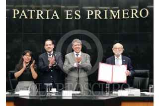 CIUDAD DE MÉXICO, 24MAYO2022.- El Senado va a actuar y a pugnar por una agenda verde en estos últimos tres años para atender el tema del cambio climático y proteger la biodiversidad aseguró el coordinador de Morena en el Senado, Ricardo Monreal. Al inaugurar el Primer foro de experiencias de la sociedad civil en la legislación ambiental mexicana: rumbo a la adopción del Nuevo Marco Global de Biodiversidad, el legislador de Morena señaló que la Cámara alta va a priorizar su actividad en este y en los desafíos que México tiene. Durante el encuentro se le entregó un reconocimiento a José Sarukhán Kermez, ex rector de la UNAM. FOTO: SENADO DE LA REPÚBLICA/CUARTOSCURO.COM