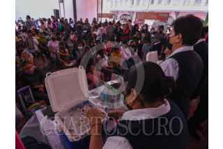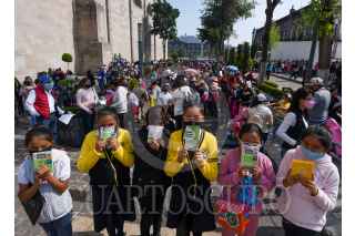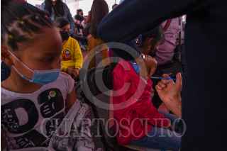 TOLUCA, ESTADO DE MÉXICO, 25MAYO2022.- Desde muy temprana hora cientos de niñas de 9 a 11 años de edad acudieron a formarse a la Plaza Fray Andrés de Castro para poder recibir su primera dosis de la vacuna contra el Virus de Papiloma Humano en donde fueron aplicadas 3500 dosis por parte de personal del ISEM. FOTO: CRISANTA ESPINOSA AGUILAR /CUARTOSCURO.COM