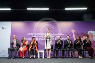 CIUDAD DE MÉXICO, 25MAYO2022.- Claudia Sheinbaum, Jefa de Gobierno; Ernestina Godoy, Fiscal General de Justicia de la Ciudad de México; Marcela Figueroa Franco, Subsecretaria de Desarrollo Institucional de la SSC, e Ingrid Gómez Saracíbar, titular de la Secretaría de las Mujeres, durante la presentación del informe de resultados de la alerta por violencia contra las mujeres. FOTO: GOBIERNO DE LA CIUDAD DE MÉXICO/CUARTOSCURO.COM