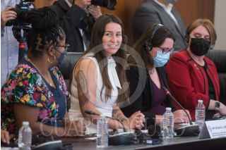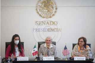 CIUDAD DE MÉXICO, 25MAYO2022.- Olga Sánchez Cordero, presidenta de la mesa directiva de la Comisión Permanente, y Micaela L. Cadena, vicepresidenta del Comité Judicial de la Cámara de Representantes del Estado de Nuevo México, encabezaron la visita de una delegación de legisladores de los Estados Unidos de América al Senado de la República. FOTO: MARIO JASSO/CUARTOSCURO.COM