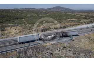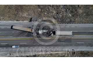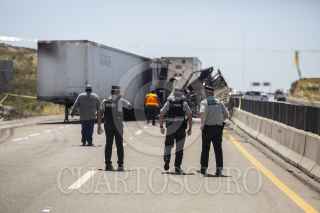 TECATE BAJA CALIFORNIA, 25MAYO2022.- Fuerte accidente se registro en la carretera de cuota Tecate- Mexicali, donde estuvieron involucrados dos camiones de carga, lo que ocasionó que ambos sentidos fueran cerrados a la circulación, esto a la altura del rancho Bencheti. Al lugar acudieron elementos periciales para realizar las primeras investigaciones, también se encuentra personal de la policía de caminos. El conductor de un tractocamión resultó sin vida. FOTO: OMAR MARTÍNEZ /CUARTOSCURO.COM