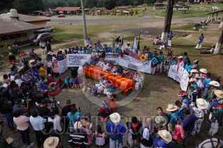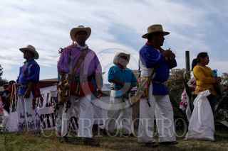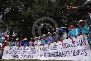 LA MARQUESA, ESTADO DE MÉXICO, 25MAYO2022.- La caravana Wixárika, que partió del estado de Jalisco hace ya un mes, ofreció conferencia de prensa en las inmediaciones del Parque Valle Turimex para informar que continuarán su andar hasta llegar a Palacio Nacional, en donde buscan una audiencia con el presidente Andrés Manuel López Obrador. Los integrantes de las comunidades de San Sebastián y Tuxpan de Bolaños exigen la restitución de más de 10,500 hectáreas de tierras que les fueron arrebatadas por ganaderos para su explotación. Las y los inconformes expresaron que buscan una resolución mutua y benefactora para ambas partes pero no permitirán ser despojados de esta manera. FOTO: GALO CAÑAS/CUARTOSCURO.COM