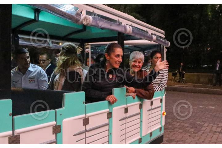 CIUDAD DE MÉXICO. 25MAYO2022.- La jefa del Gobierno, Claudia Sheinbaum Pardo, junto con el alcalde de Miguel Hidalgo, Mauricio Tabe y funcionarios del gobierno central en la rodada ciclista esta noche en el bosque de Chapultepec. FOTO: VICTORIA VALTIERRA/CUARTOSCURO.COM