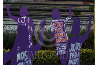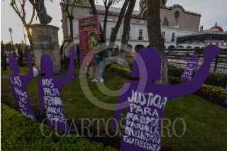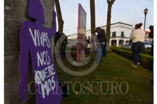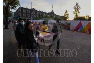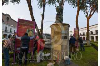 TOLUCA, ESTADO DE MÉXICO, 26MAYO2022.- Los memoriales de víctimas de feminicidio de Fátima Quintana y Eugenia Machuca, fueron removidos de la Plaza de los Mártires en Toluca y instalados de forma temporal en la Plaza González Arratia, a un costado de la estatua de Leona Vicario, autoridades estatales y familiares de las víctimas de feminicidio presenciaron el cambio. FOTO: CRISANTA ESPINOSA AGUILAR /CUARTOSCURO.COM