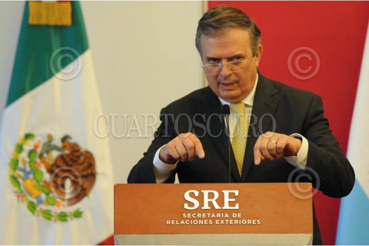CIUDAD DE MÉXICO, 26MAYO2022.- Marcelo Ebrard, canciller mexicano y el homólogo de Argentina, Andrés Cafiero, realizaron una conferencia de prensa para anunciar la forma de dos tratados de colaboración entre ambas naciones. FOTO: DANIEL AUGUSTO /CUARTOSCURO.COM