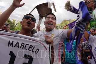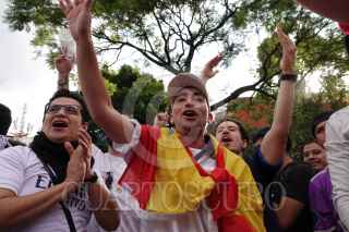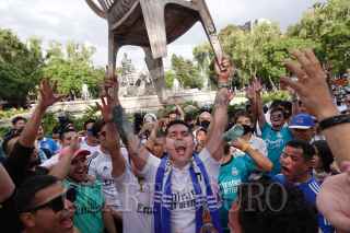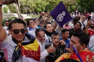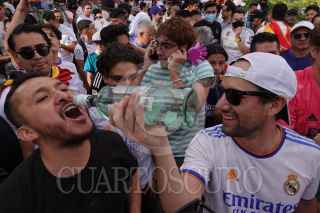 CIUDAD DE MÉXICO, 28MAYO2022.- Aficionados del equipo Real Madrid festejaron su triunfo como ganadores de la Final de la UEFA Champions League en la Fuente de Cibeles, luego de terminar el Partido en el que venció al Liverpool 1-0. FOTO: GRACIELA LÓPEZ /CUARTOSCURO.COM