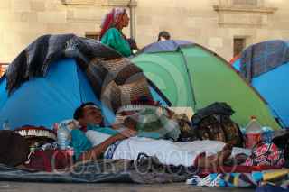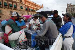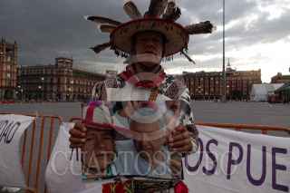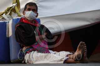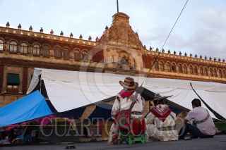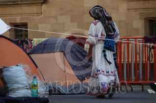 CIUDAD DE MÉXICO, 28MAYO2022.- Después de haber caminado mil kilómetros durante un mes, integrantes de la Caravana por la Dignidad y la Conciencia Wixárika mantienen un plantón frente a Palacio Nacional para entablar un diálogo con el presidente Andrés Manuel López Obrador, en el que exigirán la petición para que le sean restituidas 10 mil 500 hectáreas en Puente de Camotlán y Haujimic, Nayarit. FOTO: GRACIELA LÓPEZ /CUARTOSCURO.COM