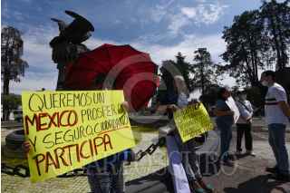 TOLUCA, ESTADO DE MÉXICO, 29MAYO2022.- Integrantes de diversas agrupaciones se reunieron en el monumento al Águila en Toluca para unirse a la Marcha Nacional ¡Por La Paz y la Unión de México!, exigiendo un alto a la violencia en el territorio nacional. FOTO: CRISANTA ESPINOSA AGUILAR /CUARTOSCURO.COM