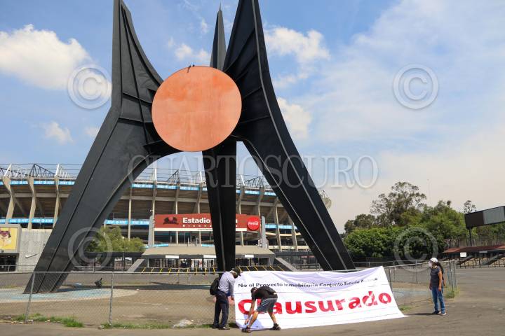 CIUDAD DE MÉXICO. 29MAYO2022.- Marcha de protesta de colonos de Santa Úrsula al proyecto inmobiliario del dueño de Televisa y Estadio Azteca, Emilio Azcárraga Jean; con la clausura simbólica del coloso de Santa Úrsula. FOTO: VICTORIA VALTIERRA/CUARTOSCURO.COM