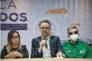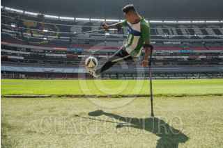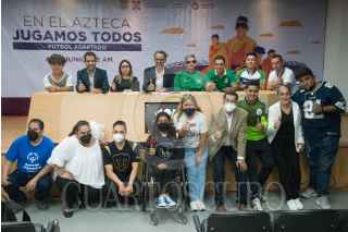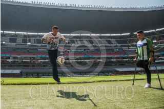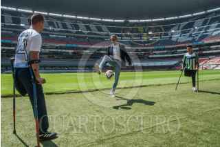CIUDAD DE MÉXICO, 30MAYO2022.- Javier Hidalgo Ponce, director General del Instituto del Deporte (INDEPORTE), y deportistas con discapacidad física, encabezaron la presentación de las actividades y partidos de futbol adaptado en el Estadio Azteca como inicio de la Olimpiada Comunitaria del próximo 4 de junio. FOTO: MARIO JASSO/CUARTOSCURO.COM