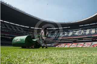 CIUDAD DE MÉXICO, 30MAYO2022.- Un trabajador poda el césped del Estadio Azteca. FOTO: MARIO JASSO/CUARTOSCURO.COM