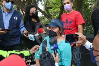 CIUDAD DE MÉXICO. 30MAYO2022.- La abogada de niños con cáncer, Andrea Rocha, junto con la paciente Gabriela Rabelo, hablaron con medios de información en la explanada del monumento a la Revolución, respecto a unas demandas por falta de medicamento de algunos representados en el Estado de México. FOTO: VICTORIA VALTIERRA/CUARTOSCURO.COM