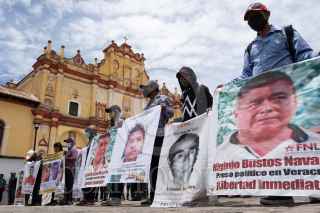 SAN CRISTÓBAL DE LAS CASAS, CHIAPAS, 30MAYO2022.- En el marco del Día Internacional de la Desaparición Forzada, integrantes del Frente Nacional de la Lucha por el Socialismo (FNLS), de las diferentes regiones del estado, realizaron una marcha y un mitin político en la Plaza de la Paz para denunciar que las desapariciones forzadas en el territorio mexicano continúan, como la desaparición hace 15 años de los integrantes del FNLS Gabriel y Edmundo Reyes. También exigieron la liberación de los presos políticos Fidencio Gómez e Higinio Bustos Navarro. Durante la marcha denunciaron por el altavoz la falta de educación y servicio médico de calidad en sus comunidades los cuales son deficientes y en muchos casos inexistentes para la población indígena del estado. FOTO: ISABEL MATEOS /CUARTOSCURO.COM