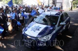 CUERNAVACA, MORELOS, 30MAYO2022.- El alcalde de la capital. José Luis Uriostegui y cuerpo edilicio entrego diez patrullas para vigilar la ciudad. Alicia Vázquez Luna, secretaria de Seguridad Publica y Protección Ciudadana explico la situación de seguridad en los distintos polígonos en que esta dividida la ciudad. El gobierno de Cuernavaca no se ha sumado al Mando Coordinado de Seguridad Publica que aplica el gobierno estatal. FOTO: MARGARITO PÉREZ RETANA / CUARTOSCURO.COM