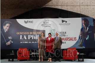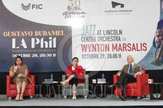 CIUDAD DE MÉXICO, 31MAYO2022.- Mariana Aymerich Ordóñez, Directora General del Cervantino; Alejandra Fraustto Guerrero, Secretaria de Cultura y Eduardo Amerena Lagunes, Coordinador Ejecutivo del Auditorio Nacional, durante la conferencia para los avances de la programación de la edición 50 del Festival Internacional Cervantino, en la cual participará el Auditorio Nacional como una de las sedes. Confirmaron la participación de La Jazz at Lincoln Center Orchestra con Wynton Marsalis y Gustavo Dudamel con la Filarmónica de Los Ángeles (LA Phil), son las dos primeras presentaciones artísticas que serán parte de la programación de la edición 50 del Festival Internacional Cervantino (FIC), mismas que integrarán el Circuito Cervantino 2022, un programa que tiene por objetivo trasladar las propuestas escénicas de este festival fuera del estado anfitrión, Guanajuato. FOTO: GABINO ACEVEDO/CUARTOSCURO.COM