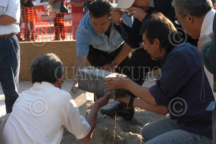 MÉXICO D.F. 26DICIEMBRE2006.- Arqueologos del INAH, recuperaron una caja tipo dedicación encontrada el sabado pasado al realizar obras donde seria reubicada la estatua de Luis Pasteur, en el parque del mismo nombre. FOTO: GUILLERMO PEREA/CUARTOSCURO.COM