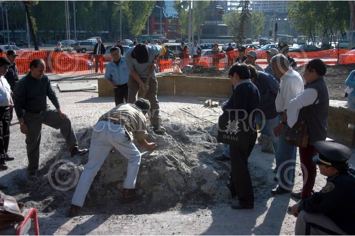 MÉXICO D.F. 26DICIEMBRE2006.- Arqueologos del INAH, recuperaron una caja tipo dedicación encontrada el sabado pasado al realizar obras donde seria reubicada la estatua de Luis Pasteur, en el parque del mismo nombre. FOTO: GUILLERMO PEREA/CUARTOSCURO.COM