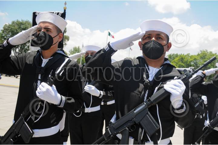CIUDAD DE MÉXICO, 01JUNIO2022.- Andrés Manuel López Obrador, presidente de México, encabezó este martes la ceremonia de conmemoración por el 80 aniversario de la creación de la Marina. Durante la ceremonia se conmemoró a distintos elementos de esta institución. FOTO: DANIEL AUGUSTO /CUARTOSCURO.COM