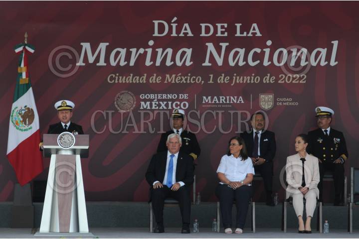 CIUDAD DE MÉXICO, 01JUNIO2022.- Andrés Manuel López Obrador, presidente de México, encabezó este martes la ceremonia de conmemoración por el 80 aniversario de la creación de la Marina. Durante la ceremonia se conmemoró a distintos elementos de esta institución. FOTO: DANIEL AUGUSTO /CUARTOSCURO.COM