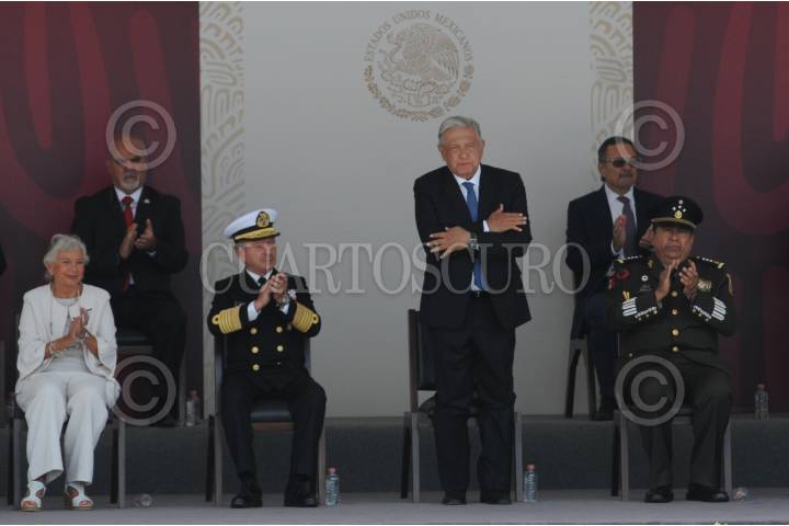 CIUDAD DE MÉXICO, 01JUNIO2022.- Andrés Manuel López Obrador, presidente de México, encabezó este martes la ceremonia de conmemoración por el 80 aniversario de la creación de la Marina. Durante la ceremonia se conmemoró a distintos elementos de esta institución. FOTO: DANIEL AUGUSTO /CUARTOSCURO.COM