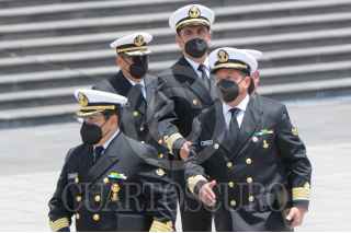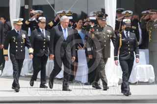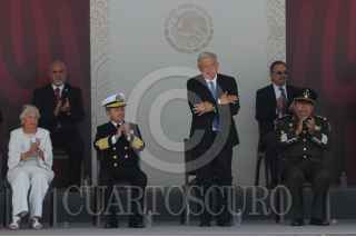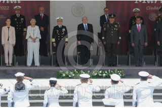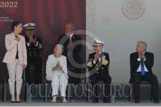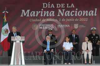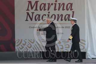CIUDAD DE MÉXICO, 01JUNIO2022.- Andrés Manuel López Obrador, presidente de México, encabezó este martes la ceremonia de conmemoración por el 80 aniversario de la creación de la Marina. Durante la ceremonia se conmemoró a distintos elementos de esta institución. FOTO: DANIEL AUGUSTO /CUARTOSCURO.COM