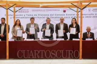 FRESNILLO, ZACATECAS, 01JUNIO2022.- David Monreal, gobernador de Zacatecas, tomó protesta al Consejo Estatal de Desarrollo Urbano y Ordenamiento Territorial de Zacatecas, para el periodo 2022-2027. FOTOS: CORTESÍA/CUARTOSCURO.COM