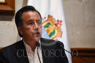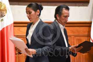 XALAPA, VERACRUZ, 01JUNIO2022.- Verónica Hernández, Fiscal General de Justicia de Veracruz; y Cuitláhuac García, gobernador de la entidad, ofrecieron conferencia de prensa para dar a conocer que detuvieron al presunto asesino de Viridiana Moreno, se trata de un supuesto asesino serial identificado como Greek “N”, también detuvieron a su pareja, Adamari “N”. Con videos del día de la desaparición de la mujer de 31 años, en donde se observa a su presunto victimario reunirse con ella, además señalaron que el detenido habría perpetrado otro crimen en Morelos el pasado mes de marzo. FOTO: YERANIA ROLÓN/CUARTOSCURO.COM