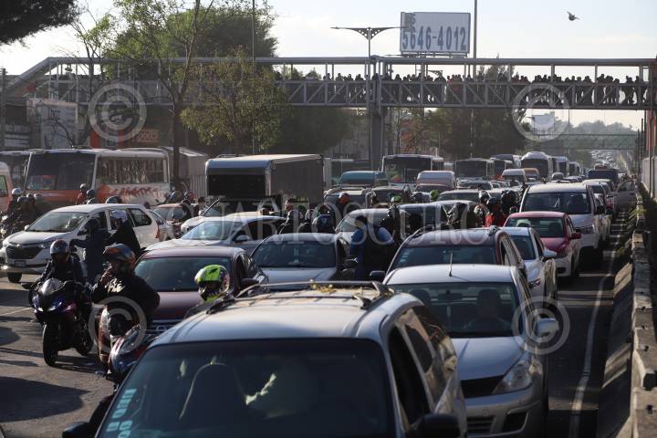 CIUDAD DE MÉXICO, 02JUNIO2022. Se encuentra cerrada la circulación de la avenida Zaragoza con dirección al centro a la altura del metro Guelatao por el bloqueo de transportistas que exigen aumento a las tarifas. FOTO: EDGAR NEGRETE/CUARTOSCURO.COM