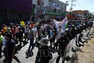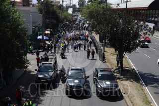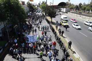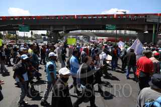 CIUDAD DE MÉXICO, 02JUNIO2022. Transportistas que exigen aumento a las tarifas marchan por la lateral de Avenida Ignacio Zaragoza con dirección al zócalo capitalino. FOTO: EDGAR NEGRETE/CUARTOSCURO.COM