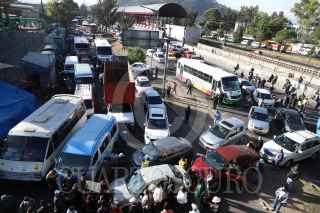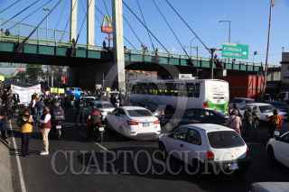 CIUDAD DE MÉXICO, 02JUNIO2022. Se encuentra cerrada la circulación de la avenida Zaragoza con dirección al centro a la altura del metro Guelatao por el bloqueo de transportistas que exigen aumento a las tarifas. FOTO: EDGAR NEGRETE/CUARTOSCURO.COM