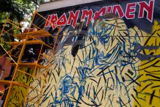 CIUDAD DE MÉXICO, 02JUNIO2022.- Un artista grafitero pinta un mural promocional de la presentación de la banda inglesa Iron Maiden, que se presentará en septiembre en el Foro Sol. FOTO: MOISÉS PABLO/CUARTOSCURO.COM