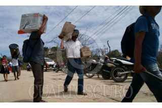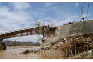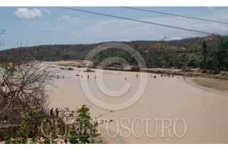 SANTA MARÍA TONAMECA, OAXACA, 02JUNIO2022.- El puente de acceso principal a Santa María Tonameca está colapsando tras el paso del huracán Agatha, pobladores atraviesan caminando el río en búsqueda de víveres. Las lluvias en la zona de impacto continúan lo que complica las labores de limpieza. FOTO: NEMESIO MÉNDEZ/CUARTOSCURO.COM